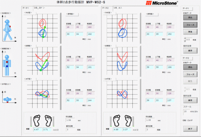 | 歩行時測定センサー&ソフトメーカーでも有るマイクロストーン株式会社様にご協力を頂き、infinityBalance装着時等のデータ測定を行いましたので、その際のデータを参考まで掲載させて頂きます。